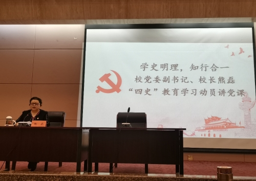熊磊同志结合自己的成长经历,回顾自身所处年代的学习成长环境,声情并茂地讲述了学习“四史”的意义和内涵,解读了历史是最好的教科书,强调“四史”学习教育重点在于学思用贯通,知信行统一;“四史”学习教育一是要带着感情、带着温度学,从认知上求认同。二是学史最后的落脚点是力行,结合高校使命和学校工作,要做到坚持以史育人、坚持学史明理谋大事、坚持学史力行解难事干实事、坚持学史明理长本事。