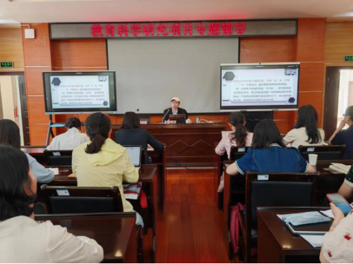 专题辅导分为两个阶段。第一阶段为专题讲座,为扩大受众面,线上直播与线下同步进行。张继平教授从教育科学研究申报技巧、如何开展高水平的教育科学研究、如何实现教育科研项目成果转化三个方面,深入浅出地阐述了教育科学研究项目设计及研究。