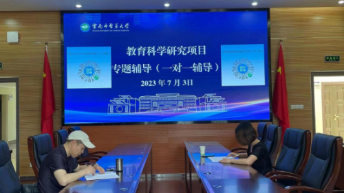专题辅导的第二阶段,以一对一指导形式开展。张教授为我校即将申报云南省本科教育教学改革研究项目的12名教学管理人员及专任教师提供一对一辅导答疑,有针对性地就申报项目提出意见建议。